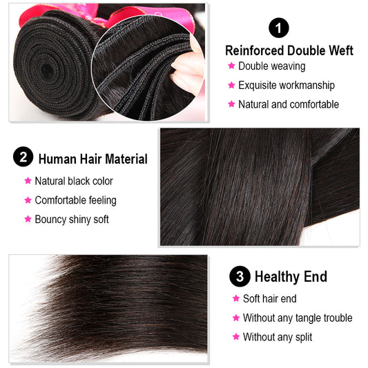 Alipearl Hair Brazilian Straight Hair Weave Bundles High Ratio Human Hair 3 or 4 Bundles Natural Black Remy Hair Extensions